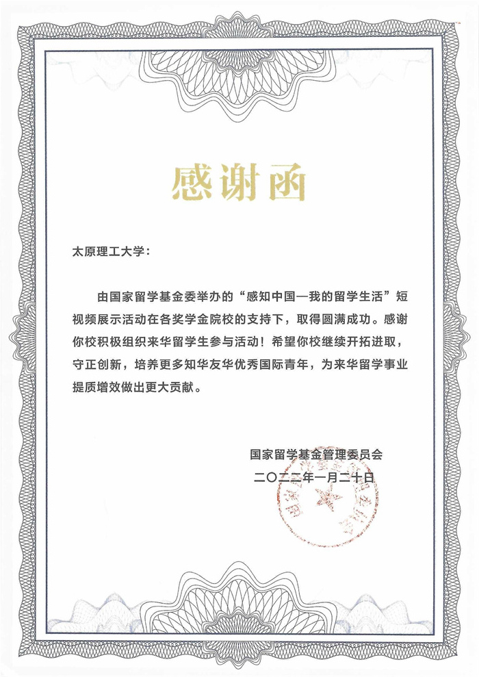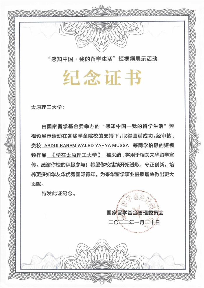 近日,由机械与运载工程学院机械工程专业2017级博士研究生ABDULKAREM WALED YAHYA MUSSA(中文姓名:魏力,国籍:利比亚)创作的短视频《学在350vip浦京集团官网》在国家留学基金管理委员会举办的“感知中国——我的留学生活”短视频展示活动中被采纳,国家留学基金管理委员会向浦京发来感谢函。