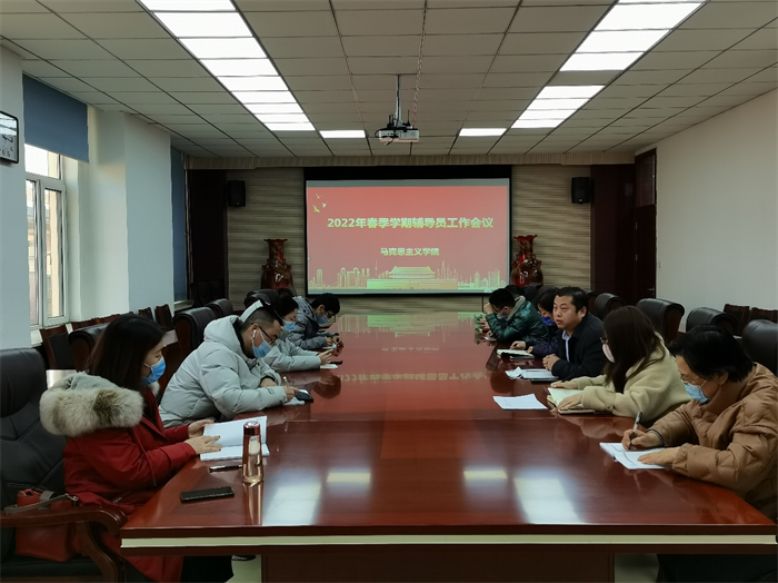 2月25日,马克思主义学院在三楼大会议室召开新学期学生工作会议,学院党委副书记赵存东、团委书记兼学工办主任高妙玲及全体研究生班主任、本科生辅导员参加会议。