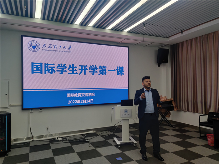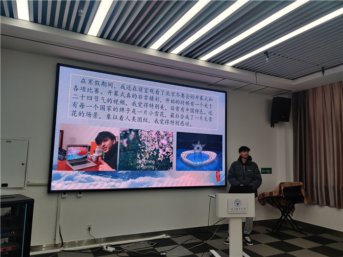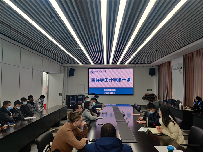2月24日下午,国际教育交流学院在迎西校区国交楼G601多功能厅开展“开学第一课”。国际学生走上讲台,结合自己的寒假见闻和科研进展,就习近平总书记在山西考察调研、北京冬奥会等热点话题与大家分享感悟。学院院长陈少平、副院长李文彬出席活动。