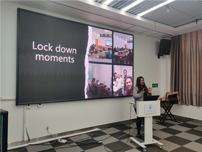 电气与动力工程学院博士研究生KADER MST SHARMIN(比娅,孟加拉国)在浦京度过了五个春秋。她同大家回顾了疫情之前在学校参加“中外交流晚会”、“国际文化节”、“留动中国”文化体验活动的美好瞬间,诉说了两年前疫情爆发初期被境外媒体误导而产生的惊慌和对学校封闭管理政策的不适,分享了两年来疫情防控常态化背景下自我调适的心路历程。她说,感谢疫情让我们更加专注于学习、科研,感谢管控政策让我们有更多的精力与来自世界各地的同学、朋友们相互陪伴。