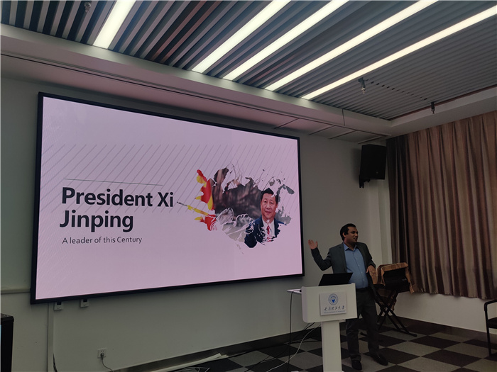 电气与动力工程学院硕士研究生MAHMUDH RIYADZH(杰丹,孟加拉国籍)是一名孟加拉国共产党党员,习近平总书记来到山西考察调研令他倍感振奋。他带领大家学回顾了习近平在山西考察调研时的暖心时刻,并指出,无论位居高位还是扎根基层,中国共产党人都做到了“心系百姓、情牵百姓”,把人民的事当成自己的事。中国能有这样的领导人是非常幸运的,而中国能在中国共产党的领导下走向复兴更是世界的幸运。