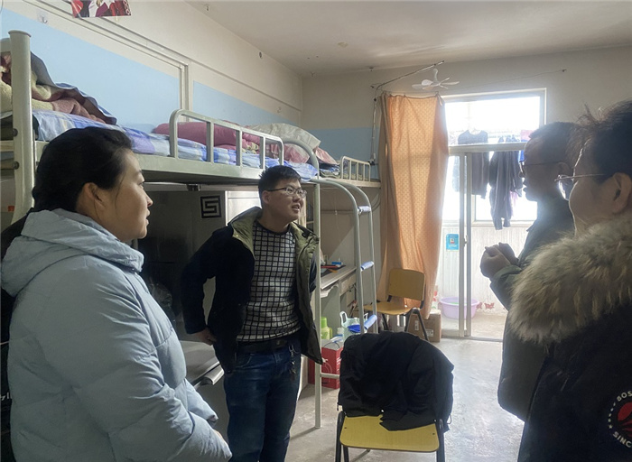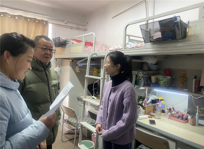 1月26日上午,材料科学与工程学院党委书记张忠璞、党委副书记郑芳、学工办主任白小芳以及辅导员郭洋、路晨鹤走入学生公寓,看望慰问寒假留校学生。