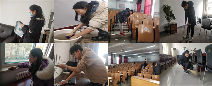 活动开展前,辅导员、活动指导教师马锦萍向同学们说明了开展此次活动的意义,在出力流汗的体力劳动中形成积极的劳动精神、养成良好的劳动习惯、掌握基本的劳动技能。活动中,指导教师全程指导志愿者对学院各个会议室、教室进行了清扫,提醒同学们注意劳动安全。同学们扑下身子擦拭桌子、窗台,扫地、拖地,汗水浸湿了衣服,但劳动的热情却丝毫不减。活动最后,指导教师对本次活动进行了总结和点评。