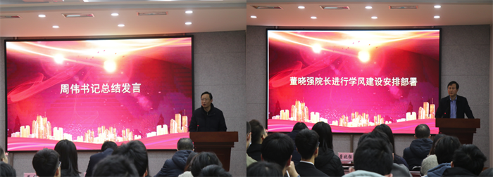 院长董晓强对学风建设做了安排部署。他从以活动强学风、以奖惩正学风、以舍风促学风、以班风树学风、树典型亮学风等方面详细阐释了学风建设的内涵意义,并就下一步工作提出了具体要求。他指出,学院对学风建设工作高度重视,积极推进学风常态化、规范化、制度化建设,希望同学们增强自律意识和拼搏意识,共创良好的学风环境,奋发有为,早日成才。