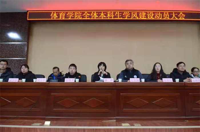 为了强化学生们的行为规范,营造优良的学风氛围,树立学生热爱学习、认真学习的新风尚,贯彻“立德树人”的根本任务,落实好“五育并举”的培养理念。11月22日晚,体育院在外国语学院一层报告厅举行了体育学院全体本科生学风建设动员大会,体育学院党政领导、中层干部、部分教师代表出席,院党委副书记张体卫主持,体育学院全体本科生参加。