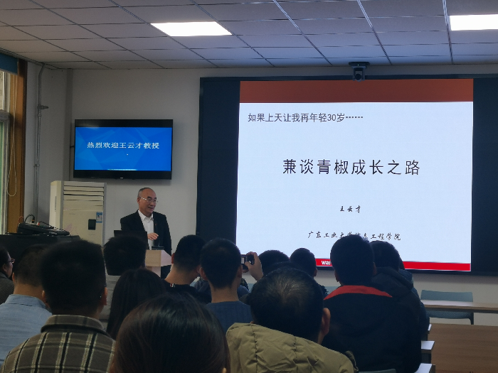 11月20日,应物理与光电工程学院及新型传感器与智能控制重点实验室的邀请,广东工业大学信息工程学院王云才教授为“凌云”学术沙龙第四期做了题为《勤奋、团队、思考——兼谈青椒成长之路》的专题报告,学院及重点实验室师生50余人参加,报告由物理与光电工程学院院长郝玉英主持。