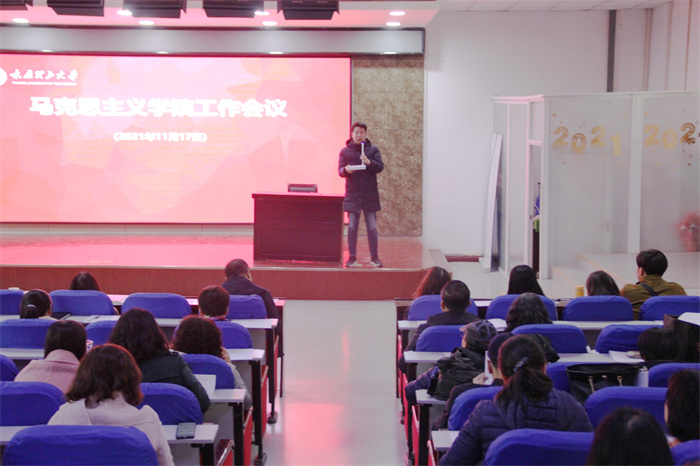 为进一步优化完善学院绩效工资二级分配制度,充分调动广大教职工投身到学科建设和学院发展中来,助力学校“双一流”建设,11月17日上午,马克思主义学院召开全体教职工大会,审议《马克思主义学院绩效工资二级管理实施细则》(2021年拟修订版)。全体教职工参加了此次会议,大会由院党委副书记赵存东主持。