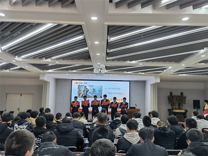 贾支正发表讲话。他结合自身经历,对广大青年学子提出了殷切期望,希望青年要重视理论学习,关注时事,切实理解国家政策,用行动为国家的发展添砖添瓦。
