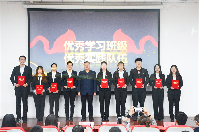 会上,李昱霞宣读2021年暑期三下乡社会实践活动、学习强国学习教育表彰决定,院领导上台为受表彰的优秀集体和个人代表颁奖。