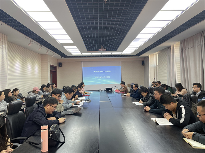 10月26日,大数据学院在学院602会议室召开会议,安排部署了近期申报国家基金、教师教学基本功竞赛、实验室安全等工作。院党委书记李平、院长李灯熬、党委副书记韩福英以及全体教职员工参加了会议。会议由韩福英主持。