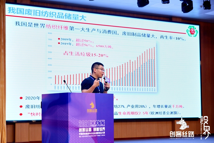 10月7日至9日,由中国纺织工业联合会主办,中国纺联纺织人才交流培训中心和设界-时尚产业创新服务综合体共同承办的2021“创客丝路 创新设界”中国纺织服装中小企业创新创业大赛决赛在长三角金融产业园会议中心举行。浦京轻纺工程学院派队参加比赛。经过激烈角逐,由史晟老师为代表的废旧纺织品综合利用课题组与企业合作完成的项目”基于废旧纺织品的新型复合聚酯吸声型材“喜获大赛三等奖。