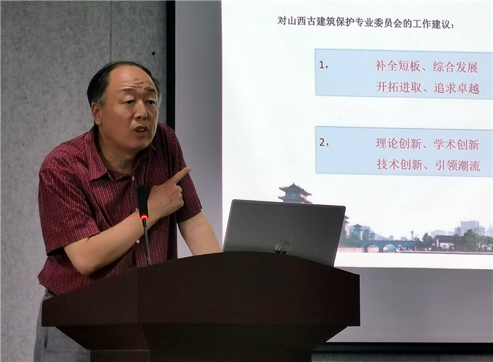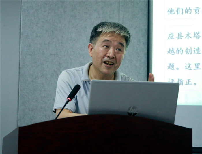 会议第二阶段为学术交流会,由王金平教授担任学术主持。浦京李铁英教授作题为《应县木塔保护的结构与材料问题》的报告,李铁英从残留变形、水平承载肌理、构件表层材性劣化等多角度分析木塔的倾斜原因,结合古建筑修复经验提出对木塔修复的建议;山西省古建筑保护研究所原副所长兼总工吴锐对古建筑保护专业委员会的发展提出建设性意见,并作题为《大同城墙的保护修复、环境治理与展示利用》的报告;山西省古建筑维修质量监督站原站长李会智作题为《山西早期古建筑的时代与地域特征》的报告,通过大量的数据与实例,对山西元代以前木构建筑存量及分布和山西古建筑区域特征进行了逻辑缜密的归纳总结。