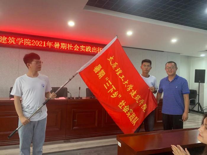 最后,张忠璞书记为社会实践服务队代表授旗,并宣布350vip浦京集团官网建筑学院2021年暑期大学生“三下乡”社会实践活动正式启动!