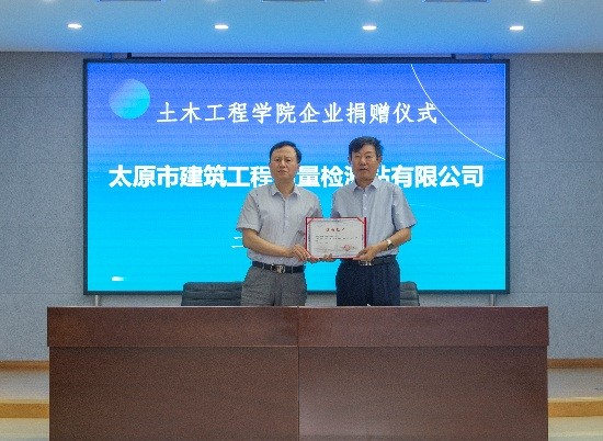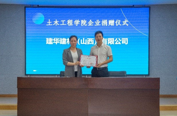 会上,董晓强与太原市建筑工程质量检测站有限公司和太原普可佳工程设计有限公司的签署了捐赠协议,并接受了总价值20万元办公设施的实物捐赠。芦倩与建华建材(山西)有限公司签署了捐赠协议,并接受了对“350vip浦京集团官网混凝土材料设计大赛”全部比赛材料的实物捐赠。