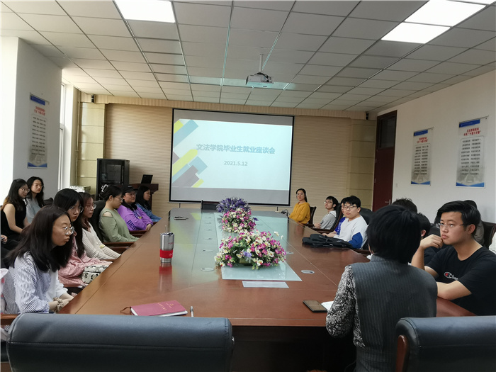为进一步落实2021届毕业生的就业工作,积极掌握二次考研学生的思想动态,文法学院分别于5月12日、13日在学院442、125会议室召开了“认清形势 明确定位”就业指导座谈会。学院党委书记申晓东、院长李永福、学工办全体成员及65名待就业毕业生参加了此次会议。
