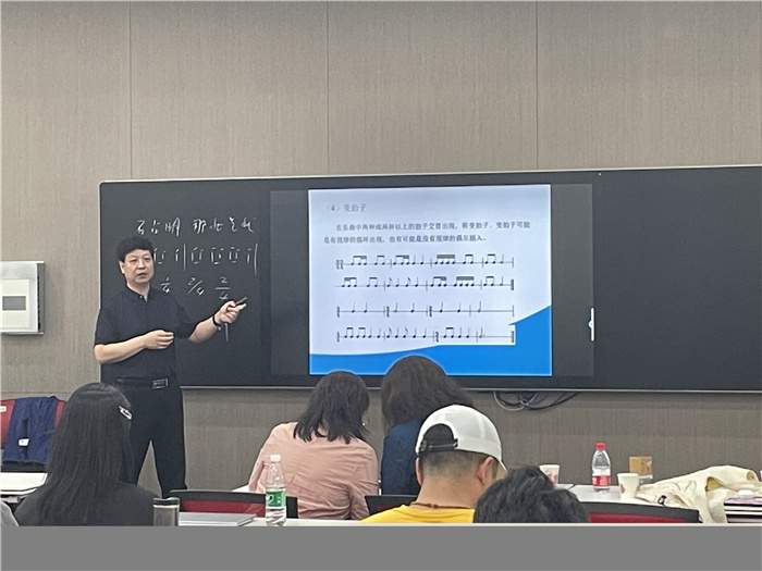 山西师范大学音乐学院教授、副院长史其威以《乐理与视唱练耳——节奏与节拍》为第二场讲座的主题内容,给大家带来了一堂优质的音乐教学示范课。史其威从概述节奏和节拍在音乐中的重要性开始,条理清晰地解释了两者的定义、作用和关系,并结合丰富的音乐旋律,层层推进地对节奏和节拍所涉及的拍、拍子、拍号、单拍子、复拍子与混合拍子、散拍子、变拍子等基本概念进行了讲解,简明而又清楚地呈现了一堂充实的音乐课程的内容架构和展开方式。