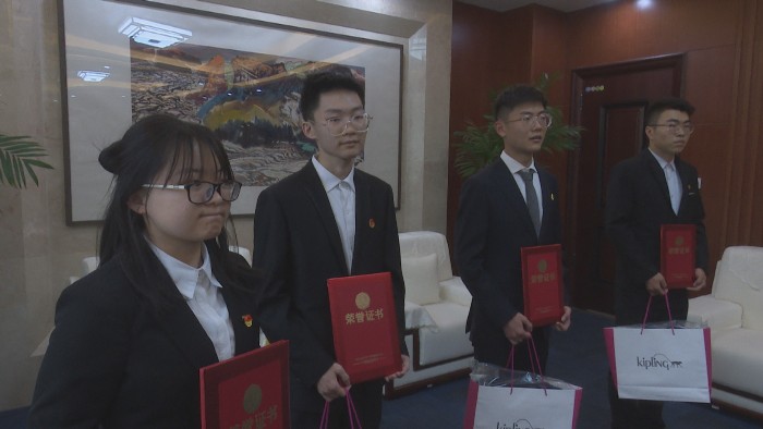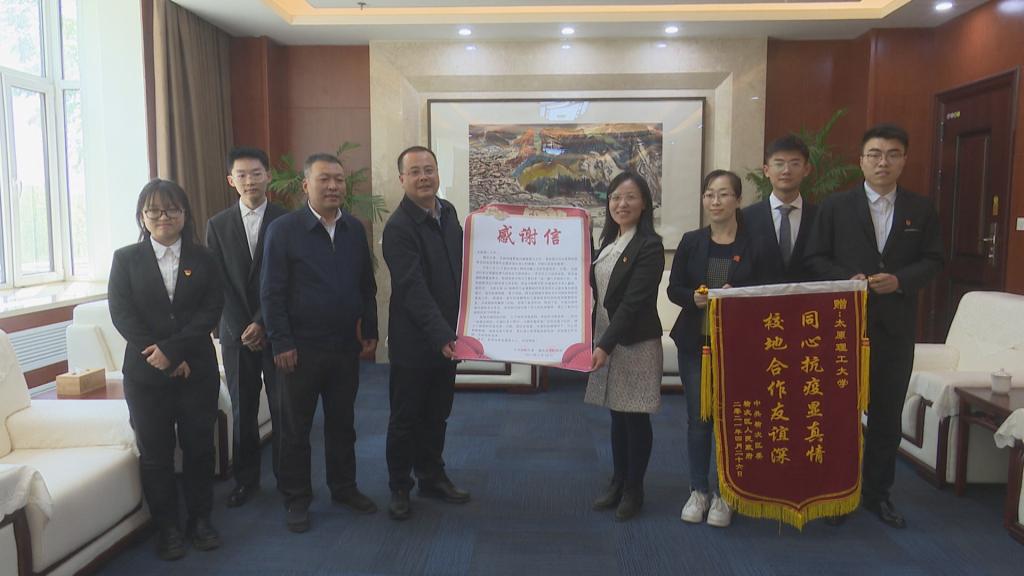 4月30日下午,榆次区委常委、副区长何宇雄与榆次区宣传部长樊彦广一行在榆次区机关事务管理局局长任贵忠、区统计局局长王将的陪同下专程来访浦京,向校团委与大数据学院赠送上书写“同心抗疫显真情,校地合作友谊深”的锦旗与感谢信,就大数据学院在新冠疫情期间的快速响应与大力支持表达衷心感谢,为在榆次区疫情防控工作中表现优秀的大数据学院学生志愿者王鑫超、赵世杰、马浩天、黎雅丽四人颁发荣誉证书并赠送慰问品,对他们积极参与志愿服务的奉献精神给予了充分的肯定。