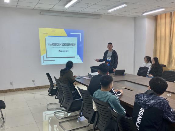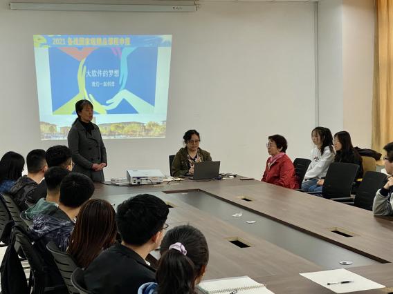 会上,廖丽娟介绍了当前已取得的成绩及国家精品课建设申报的再建设目标和思路;冯秀芳就当前“教与学”的关系,动员同学们学以致用,以实践来检验自己对理论知识的掌握;谢红薇强调了备战2021年国家级精品课程申报的意义。随后,软件工程2018级段少军同学就Web前端实训中级项目开发进行了解读,介绍了Educoder平台实训开发流程及日后相关的任务工作规划。
