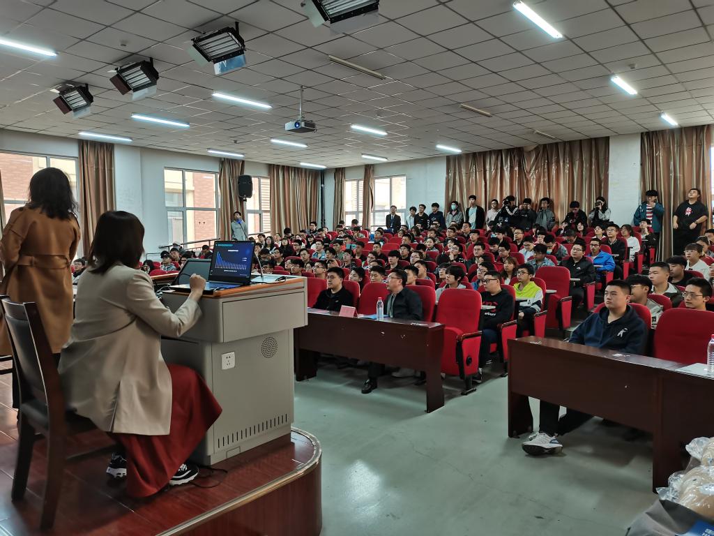 上午10时,AI技术交流于经管学院报告厅拉开帷幕,创新创业学院院长郭菲、百度飞桨高级产品运营经理徐鸣、百度飞桨产品经理张翔宇、软件学院党委副书记吕晓勇、副院长曹锐出席了本次活动。曹锐首先对百度飞桨团队的来访交流表示感谢,通过AI技术的分享和体验为同学们在专业学习和就业指导指点迷津。郭菲简要介绍学校创新创业活动开展情况并希望就此方面可以与百度开展深度合作。徐鸣指出在人工智能行业竞争日益激烈的现状下,AI人才培养依旧是社会热点,随后详细介绍了飞桨高校领航团,并分享了百度飞桨深度学习平台。张翔宇围绕“聊聊AI与开源那点事”为大家分享了基于飞桨框架的深度学习技术,让同学们对于深度学习有更加深入、透彻的理解,同时也激发起了同学们对人工智能领域的兴趣。