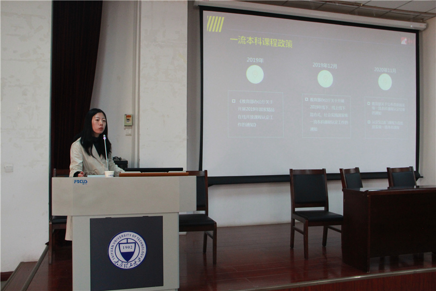 培训会上,郝小燕介绍了一流本科课程建设的相关政策,就国家级线上、线下和混合式课程的评审标准、指标体系进行了详细讲解,并介绍了一流课程建设的流程和各建设环节的技巧,她还结合相关案例为老师们讲解了课程视频录制的注意事项,并就老师们提出的问题一一细致解答。