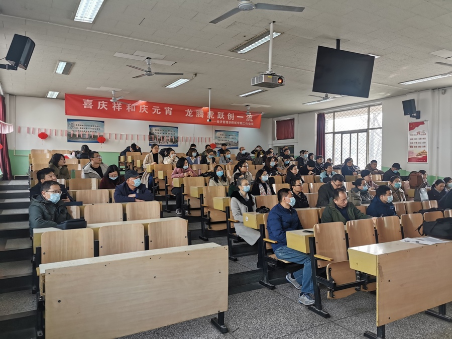 2月25日上午,正值学校第二批次开学的第一天,经济管理学院开展“喜庆祥和庆元宵、龙腾虎跃创一流”庆元宵开新程活动。全体教职工参加了活动。