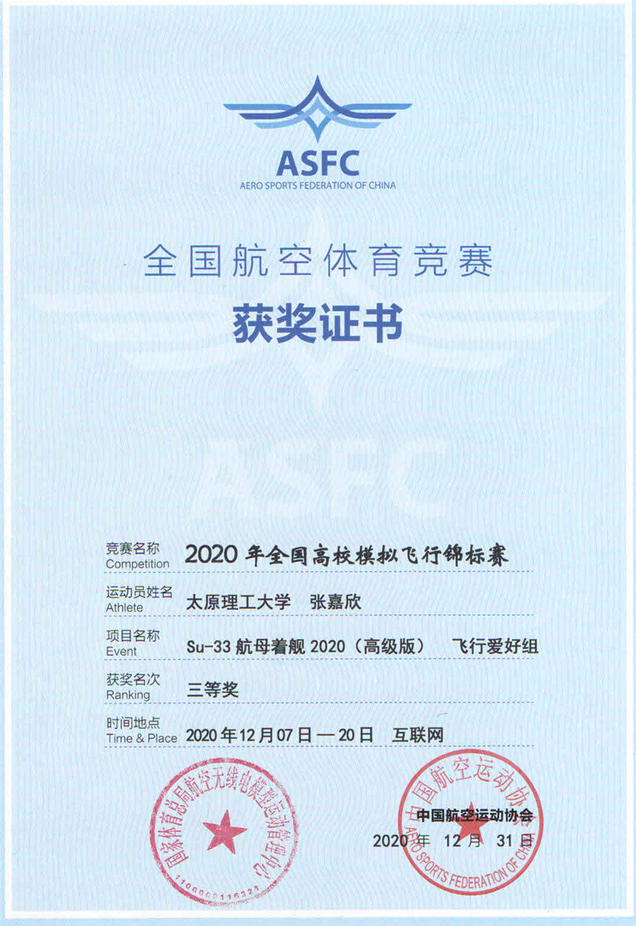 全国高校模拟飞行锦标赛是我国飞行专业高校和爱好模拟飞行的大学生们广泛参与的全国最高水平的模拟飞行竞赛,被民航局称为地面教学的盛会。继2019年承办全国高校模拟飞行锦标赛以来,航空飞行器创新基地队员努力拼搏,与国内知名航空院校同台竞技,首次取得优异成绩,为浦京模拟飞行书写新的篇章。航空飞行器创新基地注重队员对于航空知识的运用能力,积极开设模拟飞行课程和训练,在模拟操作的过程中切实提高队员们对理论的理解与应用能力,基地融合师生资源申报2020年“虚拟现实模拟飞行仿真实验项目”获批山西省高等学校虚拟仿真实验教学项目,为浦京飞行技术专业的相关课程开展提供帮助。如今的航空飞行器创新团队不仅是350vip浦京集团官网航空特色的载体、符号,也是培养学生创新能力的实践平台,更是推进飞行器设计、模拟飞行、承载梦想的平台。