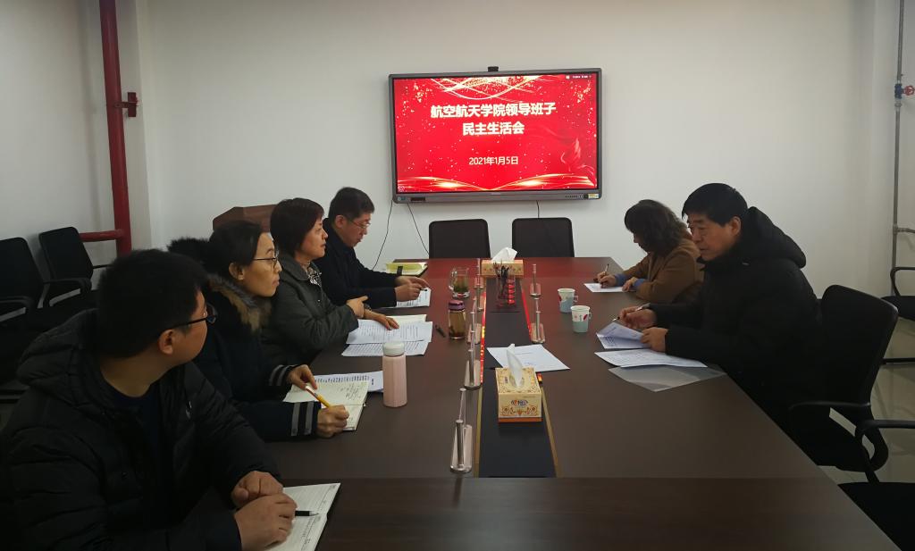 1月5日上午,航空航天学院以“贯彻习近平新时代中国特色社会主义思想,加强政治建设、提高政治能力、坚守人民情怀”为主题,召开领导班子民主生活会,副校长吕永康、校纪委委员李玮出席,学院党委副书记(主持工作)郝雪玲、郭晨花,副院长(主持工作)李文辉党政办负责人和教师代表参加了会议。