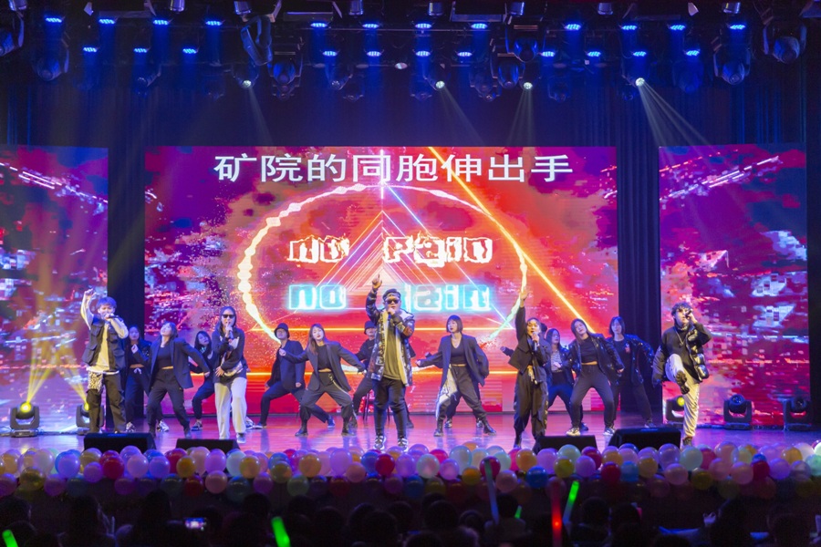 闭幕晚会节目类型丰富多彩,有炫酷无比的说唱表演、别出心裁的异域风情、意义深刻的语言类节目等。其中,原创歌曲《矿业——无劳无获》传递出矿院人的青春活力,原创小品《战“疫”有我》突出当代青年的责任与担当,串烧舞蹈《失恋阵线联盟》《Yes OK》《Crazy》,展现出矿院人青春昂扬的一面,辅导员朗诵《你的样子》讲述了疫情期间一个个的英雄事迹,教职工演唱《梦中的额吉》《相逢是首歌》体现了浓浓的师生情谊。晚会在热烈的掌声中结束,彰显了唯有“青春奋斗”,“疫”往无前,才能“扬帆起航”的人生道理。