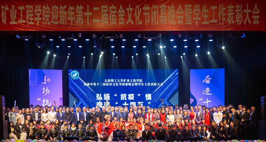 12月19日晚,矿业工程学院于虎峪校区同泽会堂举行迎新年“弘扬‘抗疫’情奋进‘十四五’”第十二届宿舍文化节闭幕晚会暨学生工作表彰大会。校后勤保障处处长张富强、校学工部副部长李栩、校团委副书记贾支正、公寓服务中心虎峪校区负责人石峰、学院党政班子成员和全体辅导员、教职工代表出席本次大会。