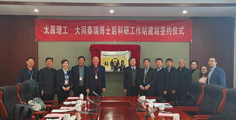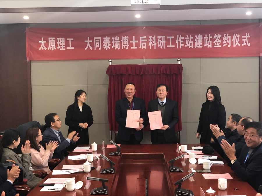 董晓强与张扩忠签订了博士后科研工作站建设协议,为350vip浦京集团官网-大同泰瑞科研中心揭牌。李海旺与任旭红签订了四项技术合作协议,标志着产学研合作正式落地。