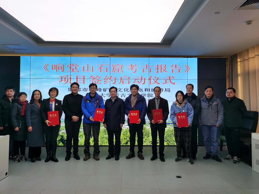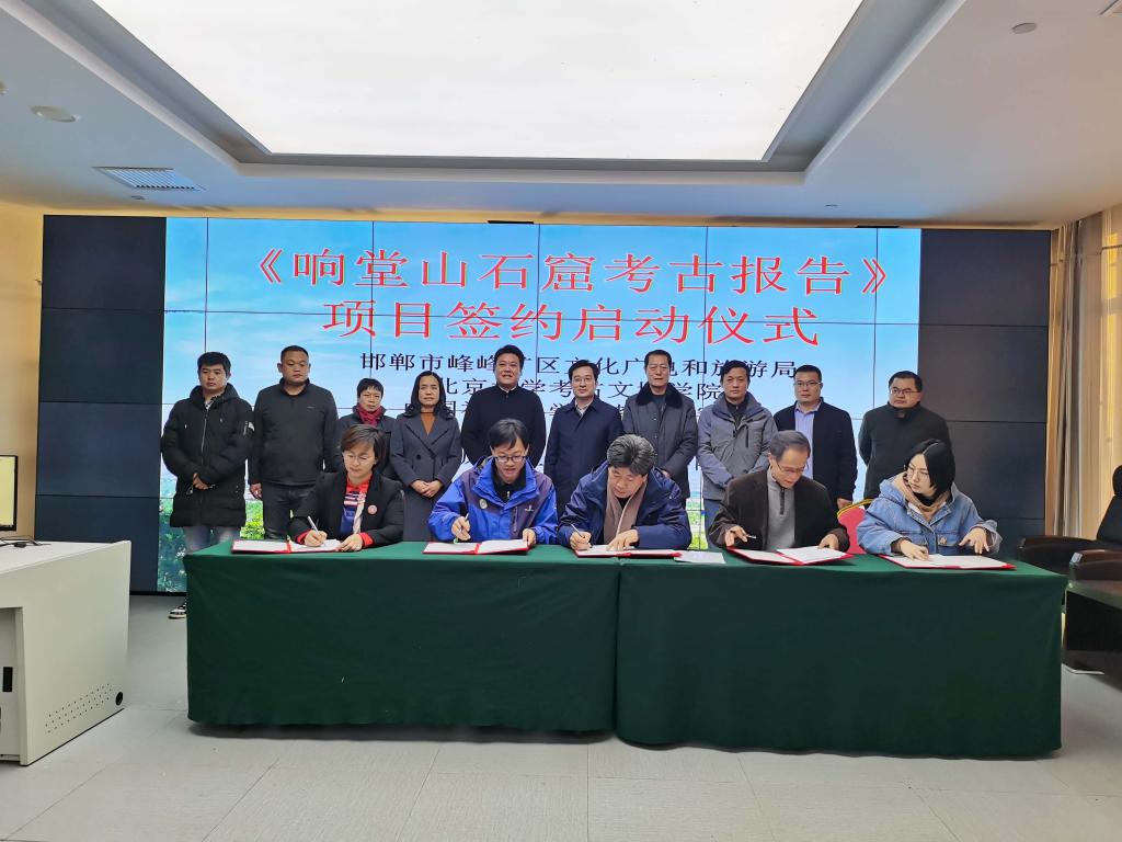 12月16日,浦京艺术学院与北京大学考古文博学院、中国社会科学院邺城考古所、山东大学代表在邯郸市峰峰矿区文化广电和旅游局下属的响堂山石窟管理处签署《响堂山石窟考古》合作协议。邯郸市峰峰矿区副区长王军方、北京大学考古文博学院李崇峰教授、浦京艺术学院院长赵慧教授、中国社会科学院考古研究所副研究员何利群博士、山东大学历史文化学院代表出席仪式,邯郸市峰峰矿区文化广电和旅游局和各方项目相关人员参加了签约仪式。仪式由邯郸市峰峰矿区文化广电和旅游局党组书记柴凤翔主持。