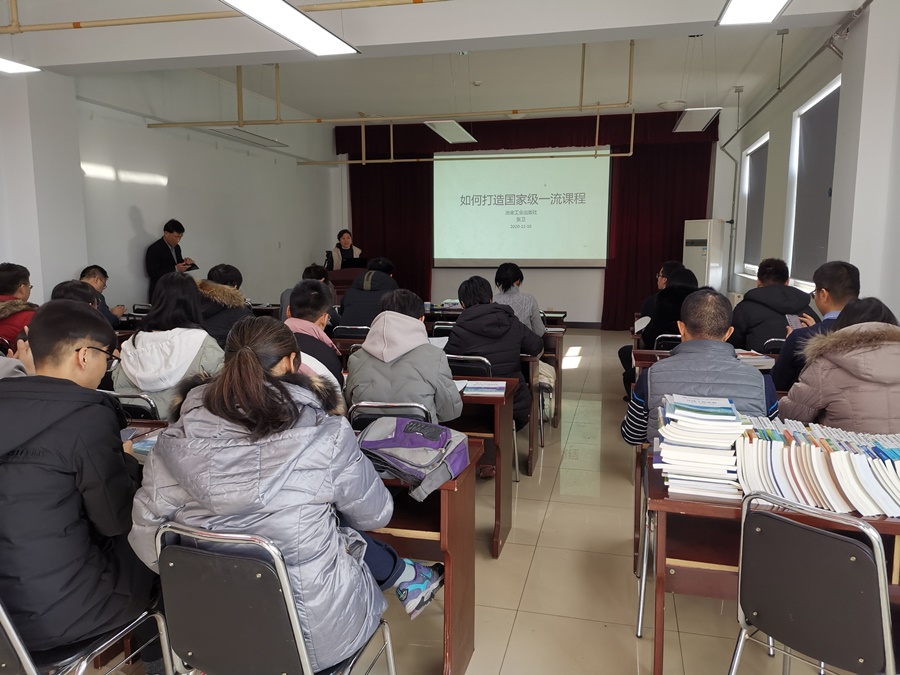 讲座中,张卫介绍了教育部对教学与教法改革的脉络,分析了专业科技出版社转型升级面临的现状,阐述了首批国家级一流本科课程建设的内容与标准,指出一流课程建设离不开教师、教材和教法三方面的支撑。针对国家级优秀教材的编写和评审要求,提出打造一流教材、一流课程需具备的要素:较强的作者团队,注重理论与新知识、新技术、新热点相融合,体现学科最新成果,将课程思政融入教材,树德、育人、能力相统一。张卫副社长从专业编审的角度为学院传经送宝、搭建平台,为老师们多出精品教材、打造一流课程指明了方向、提供了思路。