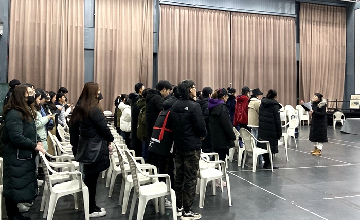活动邀请校合唱队队员、多年从事音乐教学的张楠老师进行指导。张楠对精选的十首红歌的创作背景及歌唱要点进行了讲解并带领大家学唱红歌。