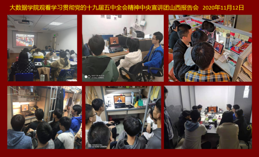 11月12日,大数据学院全体师生通过线上方式收看了学习贯彻党的十九届五中全会精神中央宣讲团山西报告会视频。