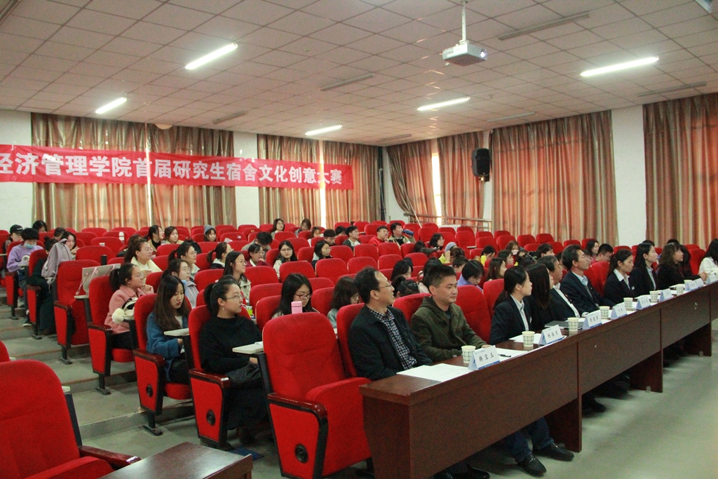 11月11日下午,经济管理学院研究生宿舍文化创意大赛在学院报告厅成功举行,大赛旨在展示宿舍文化,增进宿舍情谊,共同构建积极向上、文明卫生的宿舍氛围,增强宿舍、班级凝聚力。校后勤保障处副处长、公寓管理中心主任张文基,院党委书记李玮,副书记杨振东,明向校区公寓管理中心主任于利,院团委书记郝晓飞,宿舍楼长代表和经管学院研究生辅导员、全体研究生参加活动。