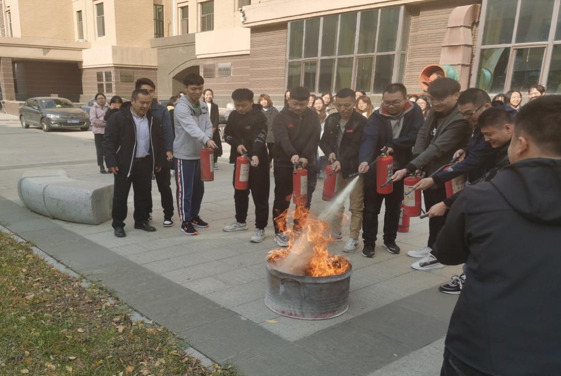 会后,组织全体学生参加了消防演练,学习如何使用灭火设备进行灭火。