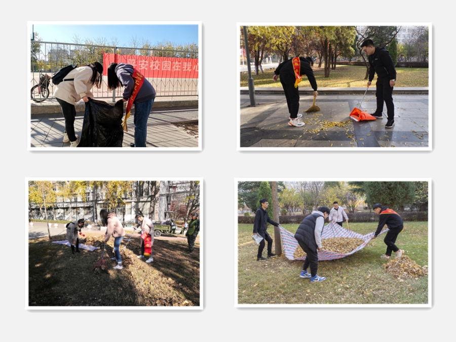 活动分为虎峪校区和迎西校区两个分队。在分组并分配服务地点后,大家拿着劳动工具前往各自的服务区,每个组长带自己的成员进行清扫草地上的落叶、把落叶装车、进行运送等流程,经过一小时多的清理工作,校园又重新回到干净整洁的状态。大家分工明确,互相合作,整场活动有条不紊地进行,展现了电气与动力工程学院志愿服务人员优良精神风貌。