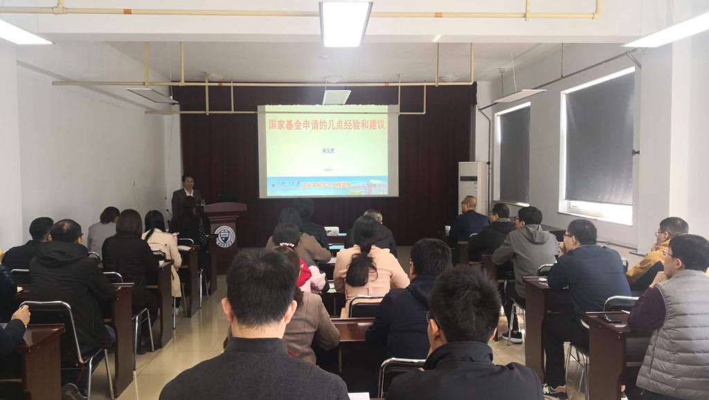 会议开始,院长王晓敏对学院教师2021年国家基金申请工作进行了动员,鼓励各位老师一定要抓住每次专家讲座交流的机会,反复凝练,提高基金申请书的质量。宋义虎先后完成8项国家自然科学基金项目,在国家基金申请方面具有丰富的经验,他以“申请国家自然科学基金的体会与交流”为题,与学院教师详细阐述了基金申请书每部分撰写的思路方法及需要注意的事项,同时也分享了基金申请中失败的教训与成功的经验,既讲解了撰写申请书的方法,也鼓舞了教师们的信心。