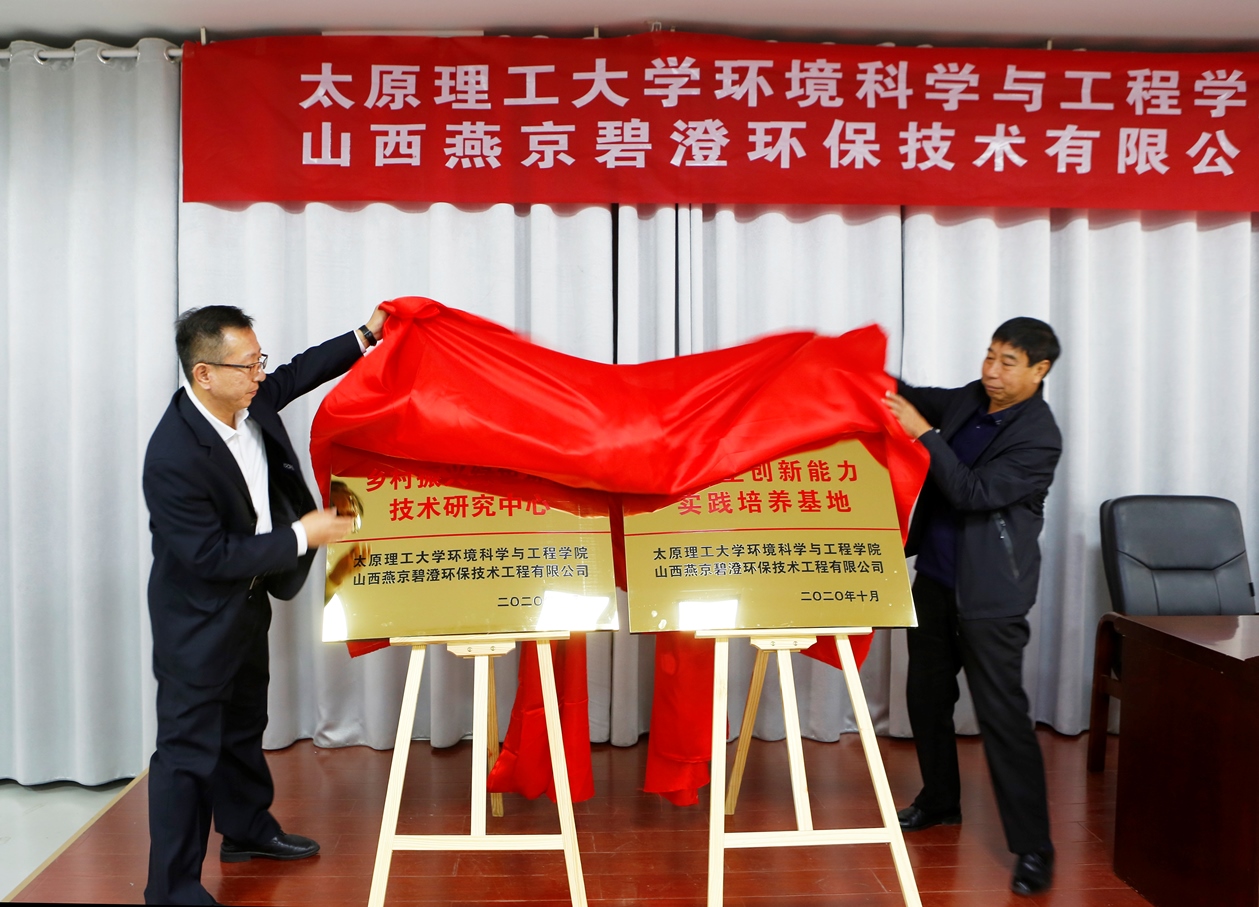 学院党委书记徐鑫与公司名誉董事、党支部书记赵保清共同为“乡村振兴绿色环保技术研究中心”和“大学生创新能力实践培养基地”揭牌。