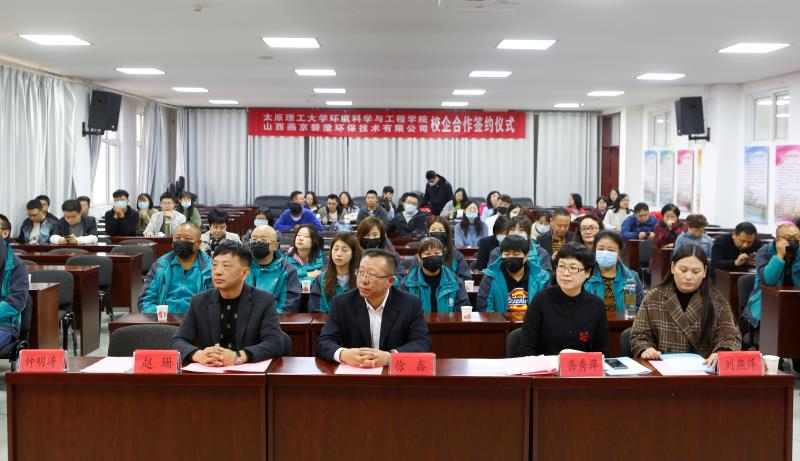 10月20日上午,环境科学与工程学院与山西燕京碧澄环保技术有限公司校企合作签约仪式在环工学院四层会议室举行。出席本次仪式的有环工学院全体党政领导、师生代表、企业代表。会议由党委副书记钟明涛主持。