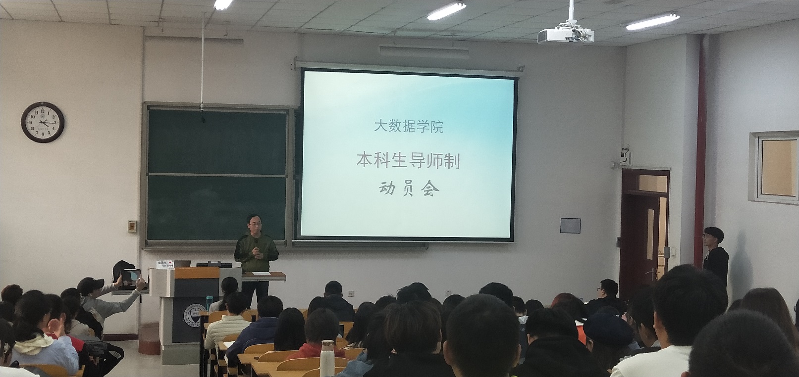 为深入贯彻以学生为中心,促进学生全面发展,激发学生学习兴趣和潜能,增强创新精神和实践能力,充分发挥教师在学生培养中的主导作用和学生的主体作用,建立新型师生关系,全面提升大数据学院的学生培养质量。近日,大数据学院于行思楼B220召开大数据学院2018级本科生导师制动员大会,大数据学院数据科学与技术系主任李东喜、大创项目指导教师刘卫玲、辅导员黎潇锴以及数据科学与大数据技术专业2018级全体学生。