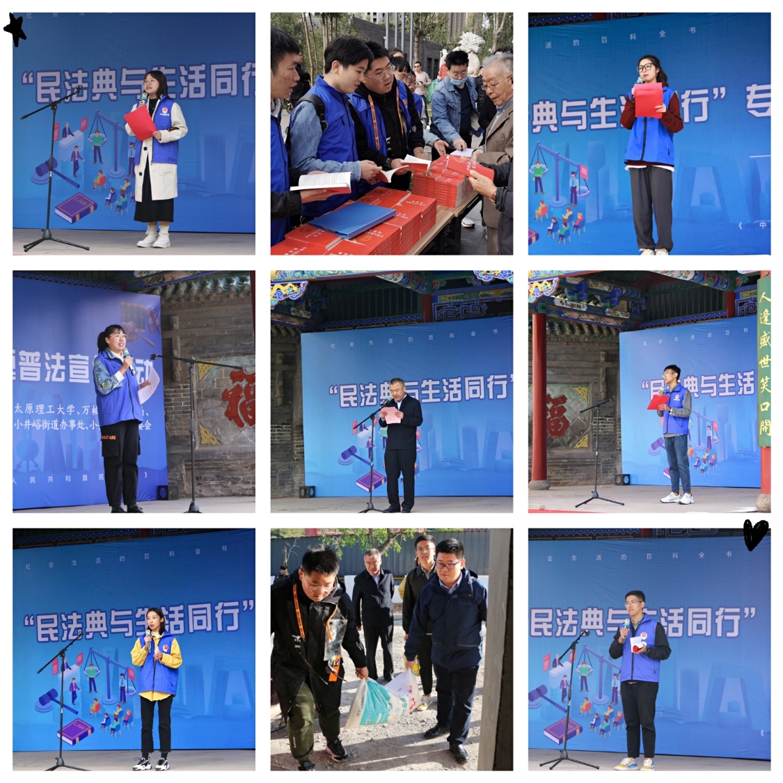 10月4日,文法学院20位师生组成民法典宣讲团,走进万柏林区小井峪社区和杏花岭区小返乡水沟村,开展“民法典与生活同行”专题普法宣传和法律咨询活动,并向群众赠送500本民法典。