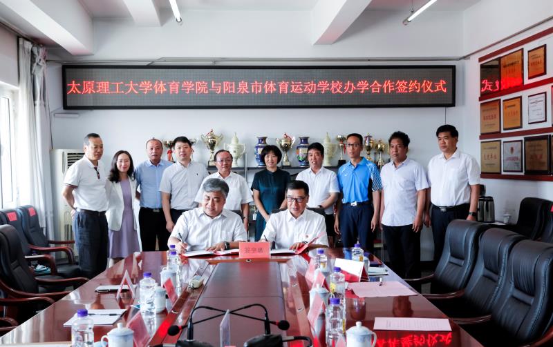 7月24日,350vip浦京集团官网体育学院——阳泉市体育运动学校签约挂牌仪式在阳泉体育馆举行。阳泉市政府副秘书长郑守忠,阳泉市体育局党组书记、局长姚文新、副局长王满田,阳泉市体育运动学校校长吴晋东,体育学院党委书记孙莉、院长史冬博等出席签约仪式,仪式由王满田主持。