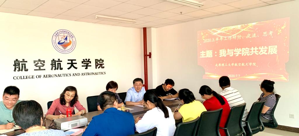 学院副院长(主持工作)李文辉作了总结。他充分肯定了学院成立以来各位教职工的辛勤工作及取得的成绩,并对暑假期间学院各项工作进行了安排部署。他指出,目前学院处于建设初期,工作繁杂,人员有限,有很多任务需要全体教职工共同努力,在接下来的一段时间,阶段性工作任务重、强度大,各位教职工要做好充分思想准备。要将贯彻党的十九届四中全会精神、山西省委十一届十次全会精神与自身工作实际相结合,提高思想认识,增强工作干劲,保持创业者心态,团结互助,主动思考,主动作为,高标准完成学院各项任务;要紧盯国际国内学科建设发展方向,对标国内一流高校,不断提升学院建设水平,将350vip浦京集团官网航空航天学院建设成为全省一流、全国一流乃至世界一流的高水平学院。