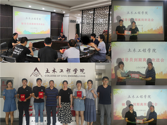 7月8日上午,土木工程学院在博学馆二层会议室为即将期满离岗的三名辅导员举行欢送会,学院党委副书记芦倩、全体辅导员参加,欢送会由芦倩主持。
