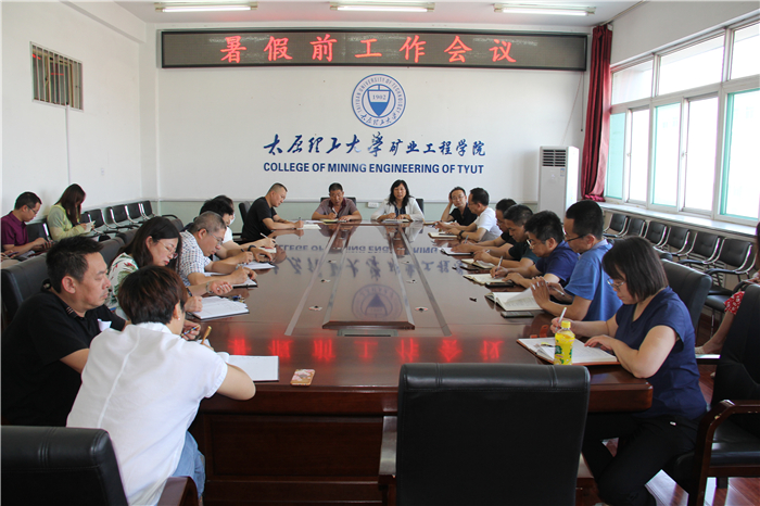 7月7日上午,矿业工程学院在致明楼318会议室召开暑假前工作会议,学院党政班子成员、各系、实验中心主任、副主任、全体党支部书记、三办主任及团委书记、副书记参加了会议。院党委书记薛武杰主持会议。