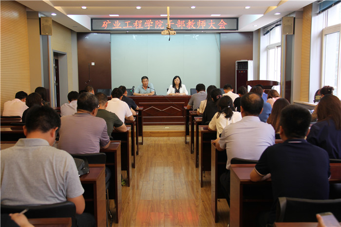 6月23日下午,矿业工程学院在虎峪校区采矿楼二层会议室召开了干部教师大会。院党委书记薛武杰主持会议并受校党委组织部委托宣读了校发〔2020〕25号关于王开同志的职务聘任文件,对王开同志提出了希望与要求。薛武杰强调,干部选任工作是学校和学院政治生活中的一件大事,事关学院的干部队伍建设和班子建设,事关学院的发展大局。王开同志任职学院副院长给学院班子注入了新的活力。希望王开同志能够进一步提高政治站位,加强廉洁自律和自我修养,增强“四个意识”,牢固“四个自信”,坚决做到“两个维护”,旗帜鲜明地同以习近平同志为核心的党中央保持高度一致,坚决贯彻校党委决策部署,坚持民主集中制原则,虚心学习,担当作为,积极工作,与学院班子一道为学校“双一流”建设和学院发展做出积极贡献。