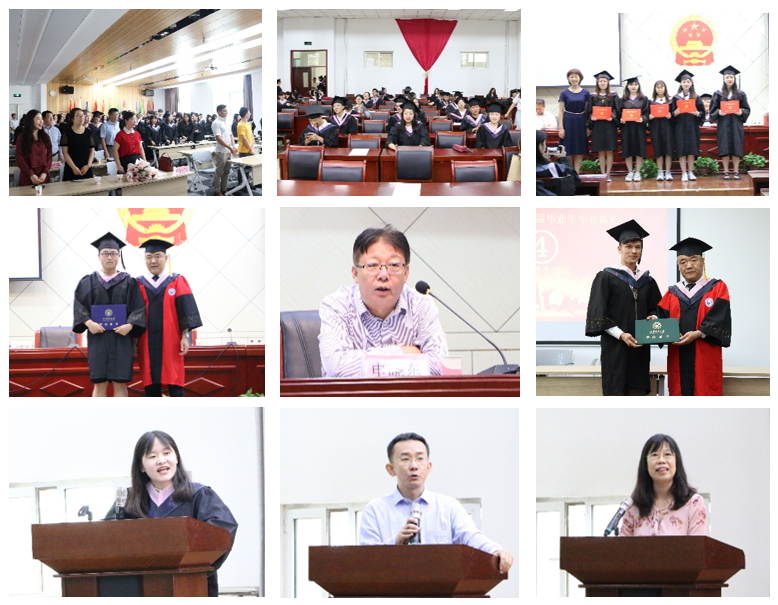 杨建华宣读表彰了《我国认罪量刑协商制度之构建》等16篇院级优秀毕业生论文并为其颁奖;杨国佐、张玮介绍了文法学院2020届毕业生获得毕业证书和学位证书的情况;院长李永福为2020届本科毕业生拨穗正冠,并和每一位同学合影留念。