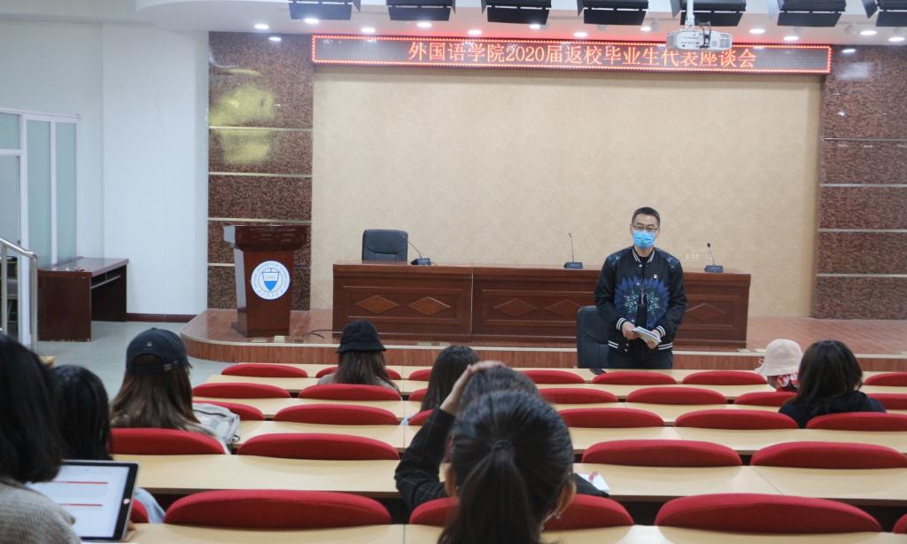 4月27日上午,外国语学院在学院报告厅与2020届返校毕业生代表展开座谈。院党委副书记郑为国、全体辅导员及2020届返校毕业生代表参加。