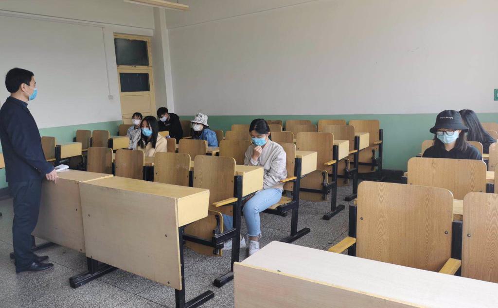 4月27日上午,文法学院汉语国际教育专业16级已返校学生于思贤楼1503、1505室开展本学期的考研复试和就业指导会。文法学院汉语国际教育系李炜、巩彦斌和赵晓靖担任本次考研复试及就业辅导老师,已返校学生按照9点,9点30分和10点三个批次分别在两个教室按时参加指导会。